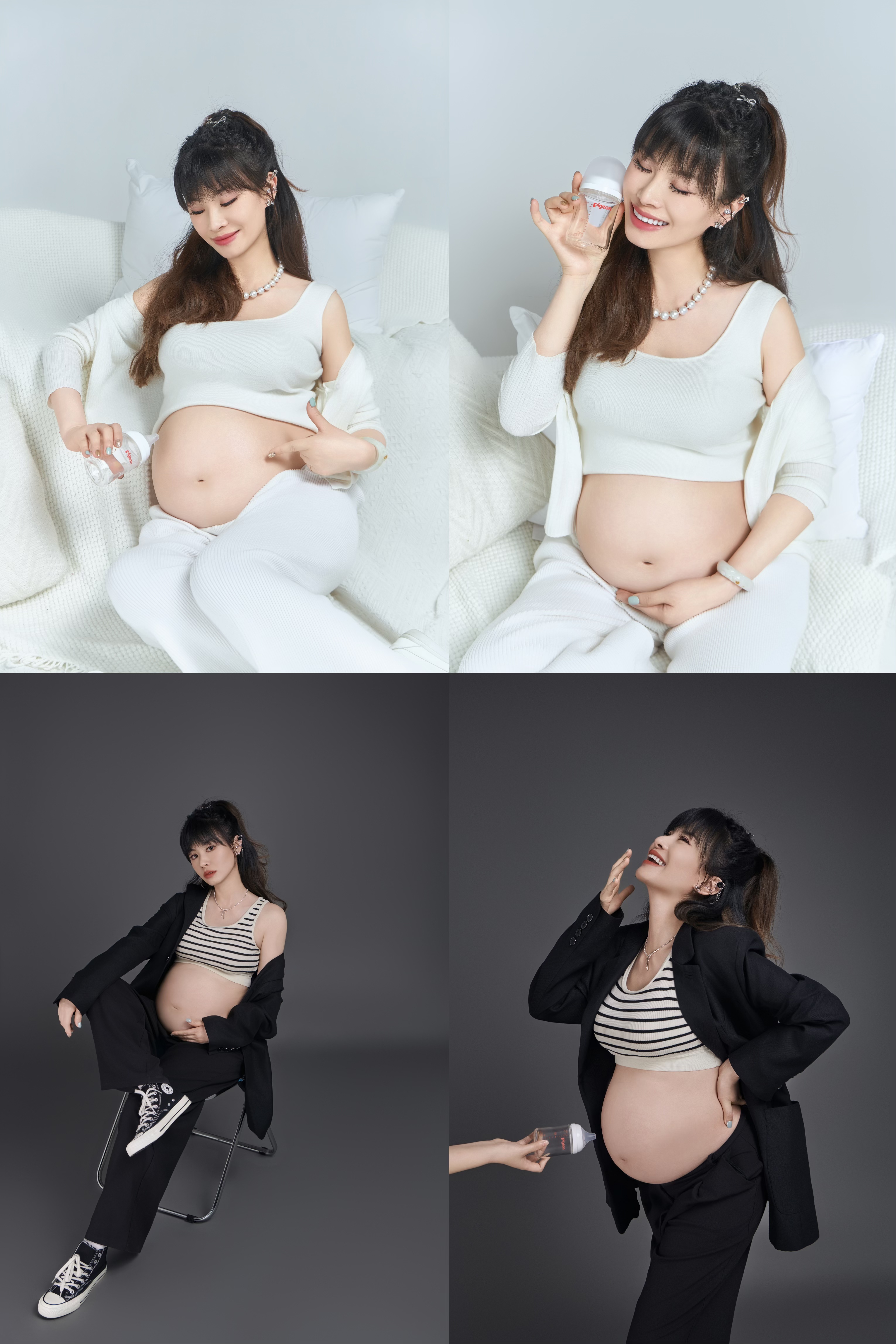 为了将这段最珍贵的合体时光定格成永恒,她带着贝亲奶瓶走进海马体照相馆,用镜头记录下与未出生宝宝的“第一张合影”。