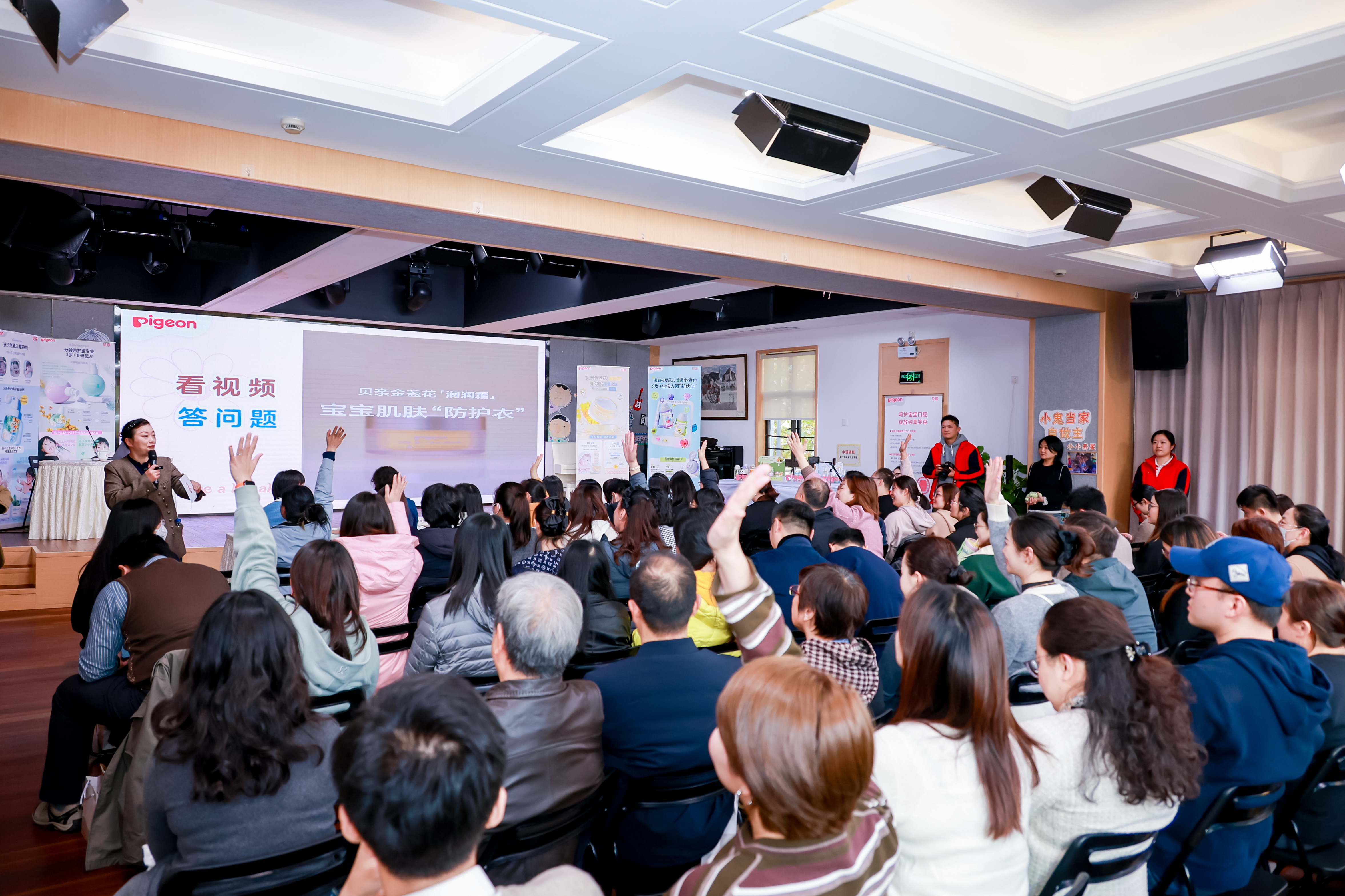 专题讲座后的互动环节,家长们热情参与,现场气氛激烈,在加深家长们对婴幼儿科学养护知识的理解与记忆的同时,更亲身体验到贝亲新款金盏花润润霜的舒缓效果以及贝亲水杯的实用性。