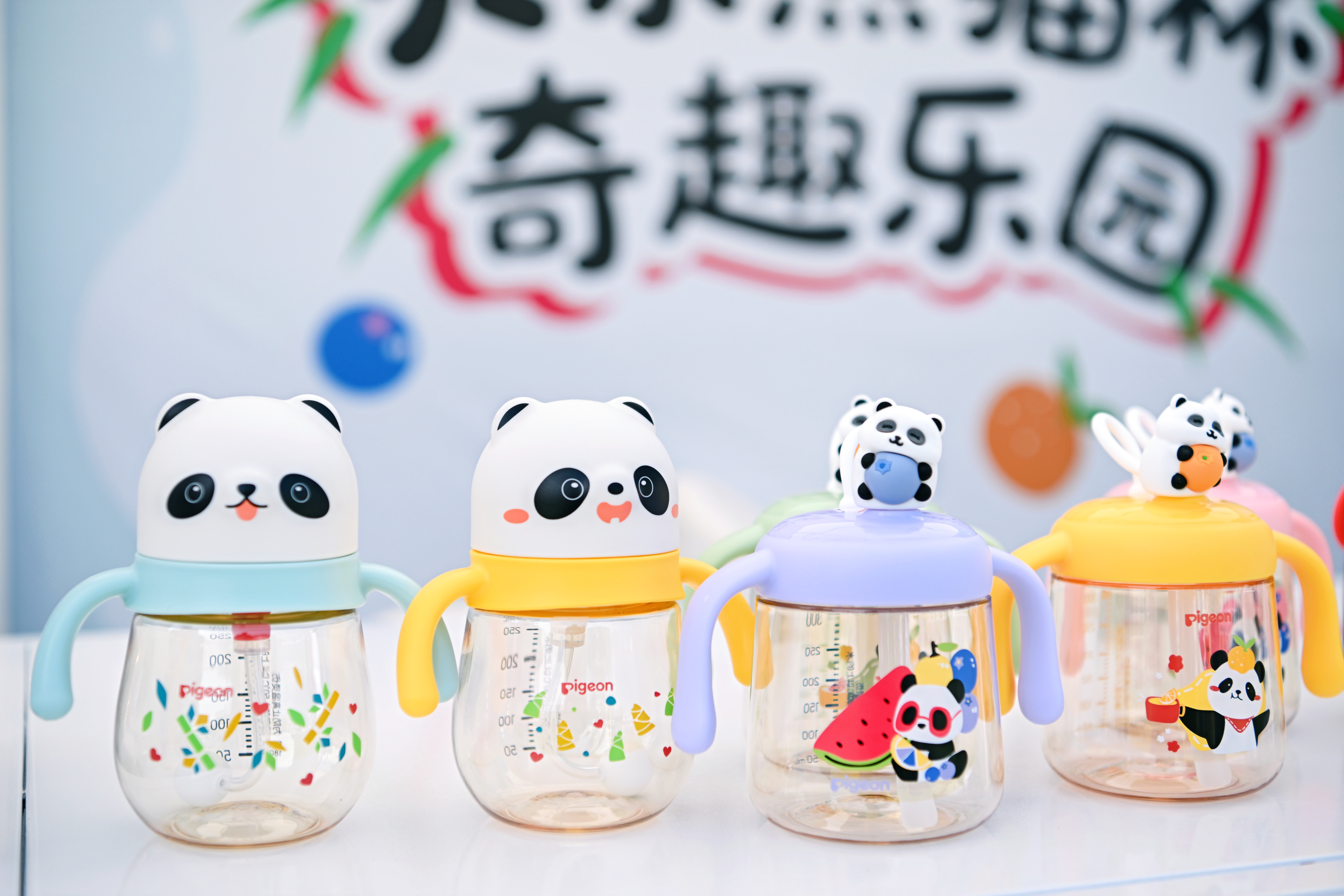 沿着熊猫立牌的指引往里走,乐园的“科学属性”逐渐清晰。作为主角的贝亲熊猫杯家族集体亮相:熊猫学饮杯萌趣可爱,v阀设计分阶流速,让学饮过程更轻松;熊猫牛奶杯提供4款高颜值配色,搭配双吸管设计,满足多样饮品需求;小吨杯双ip图案萌力大开,两种容量随心选择,更有贴心双饮设计,让喝水变得趣味十足。不同款式各有巧思,吸引了众多宝妈宝爸驻足体验,“熊猫杯”以其贴心设计和萌趣形象,成为现场备受热捧的育儿潮品。