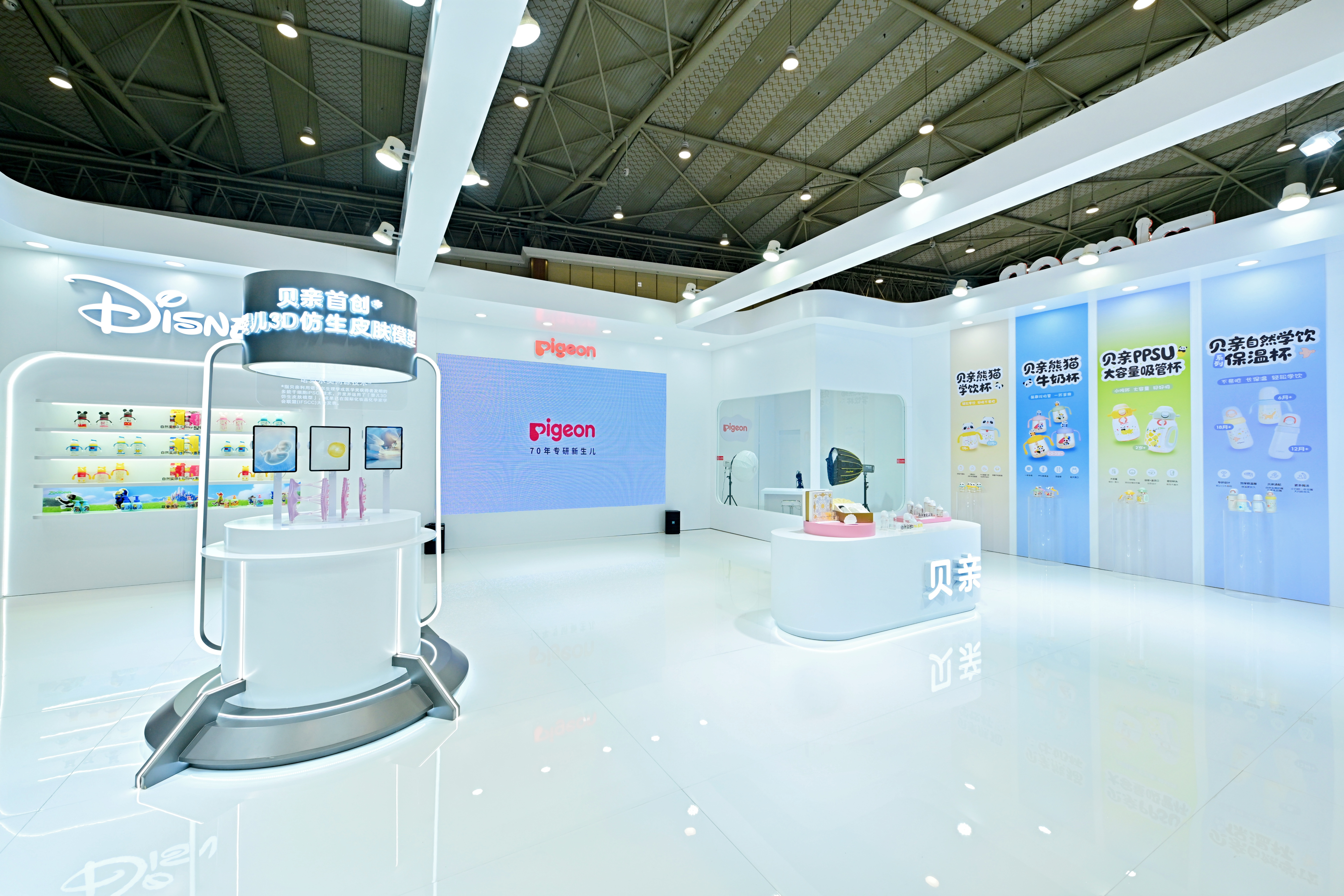 如果说,贝亲在室外打造的“熊猫杯奇趣乐园”是一场为亲子家庭定制的温暖陪伴与趣味探索,那么走进展馆内部,品牌则更多聚焦于产品功能与育儿科学的深度呈现。