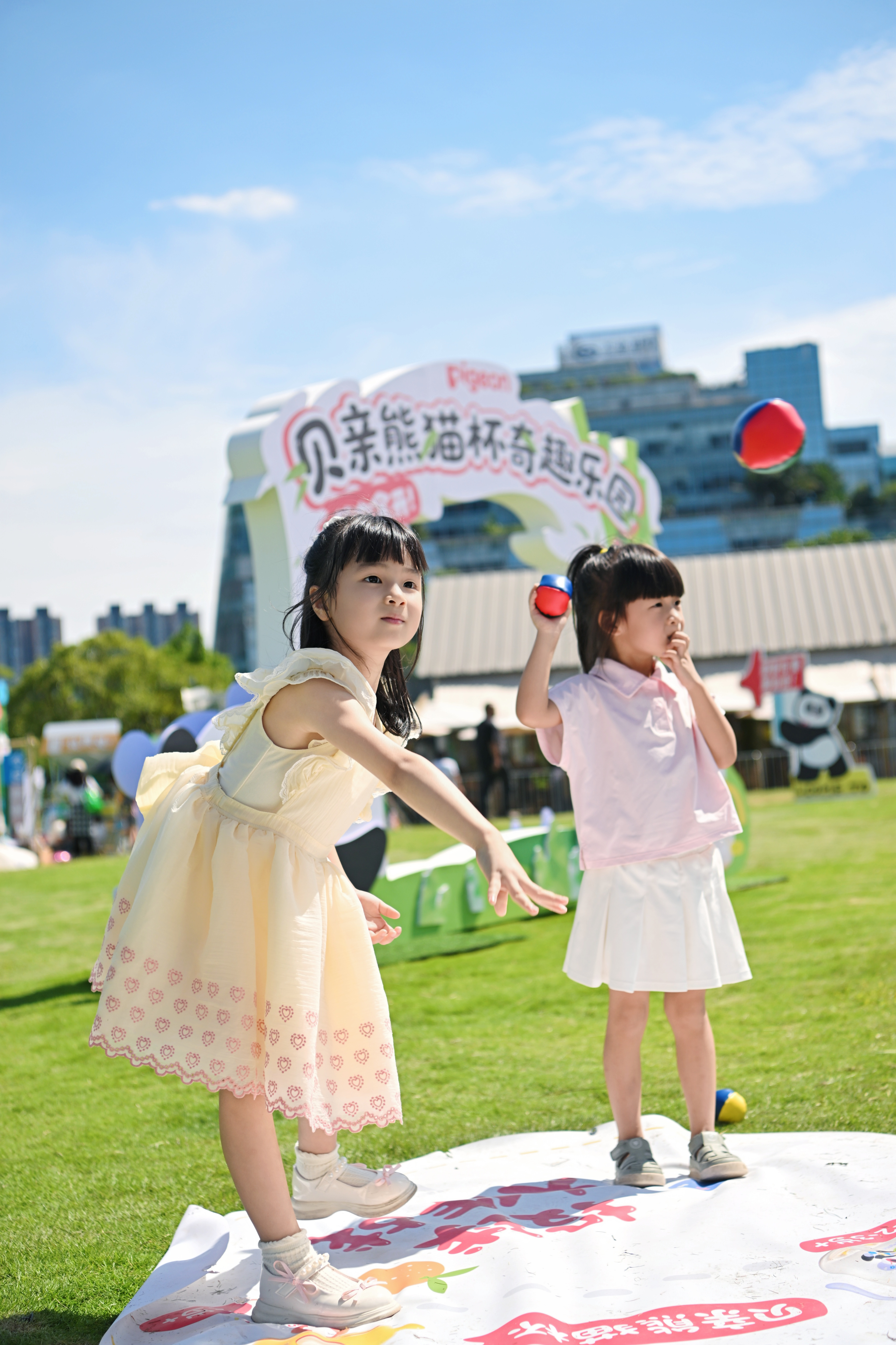 随着日头渐暖,乐园里的互动游戏让氛围愈发火热,将成都式的悠闲遛娃时光推向高潮。“投球大作战”区域,家长们陪伴孩子左右,小朋友们执起沙包奋力一掷。每当沙包掠过草坪,顺利击中投球板上的“熊猫杯”,孩子们便会高举双手爆发出清脆的欢呼 “中啦”,这一刻欢乐的亲子时光也悄悄住进孩子心里。现场的熊猫特色手举牌始终是“流量焦点”,孩子们拿着手举牌,开心地变换着造型,现场欢声笑语不绝于耳。